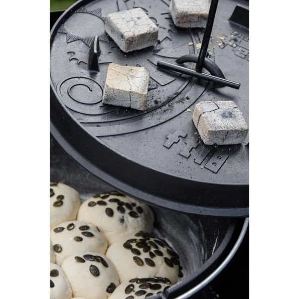 Der Feuertopf ft18-t von Petromax eignet sich für mehr als 20 Personen. Die Petromax Feuertöpfe, auch als Dutch Oven bezeichnet, sind ideale Begleiter für Draußen-Aktivitäten wie Reisen, Camping, etc. Mit ihnen garen Speisen, wie z.B. Fleisch und Gemüse, sehr schonend im eigenen Saft über offenem Feuer oder im heimischen Backofen sowie auf allen Herdarten. Der einzigartige Geschmack entsteht durch die konstante Rundumwärme im Topf. Die Deckel der Feuertöpfe können zudem auf Wunsch als Servierplatte oder Pfanne genutzt werden. Dank der vorbehandelten Oberfläche (seasoned finished) ist der robuste Petromax Feuertopf aus Gusseisen sofort verwendbar. Mit den Petromax Feuertöpfen kann man draußen leckeres und gesundes Essen für Familie und Freunde zubereiten.Art.-Nr.: 1532723
